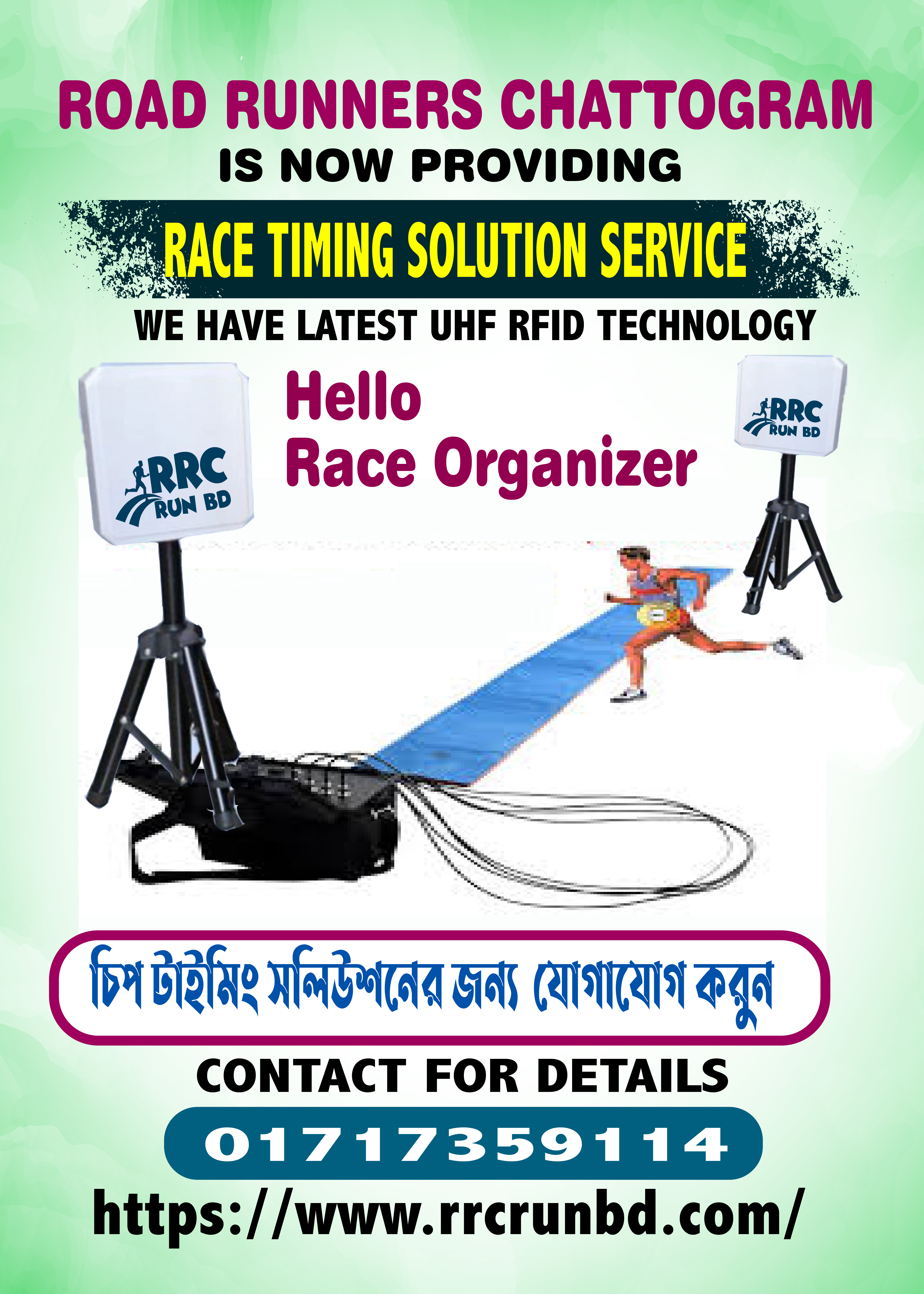 RRC RUN BD is a dedicated technology provider specializing in race timing solutions. We are a locally focused company with a global standard, bringing together expertise in event management, sports technology, and IT infrastructure.